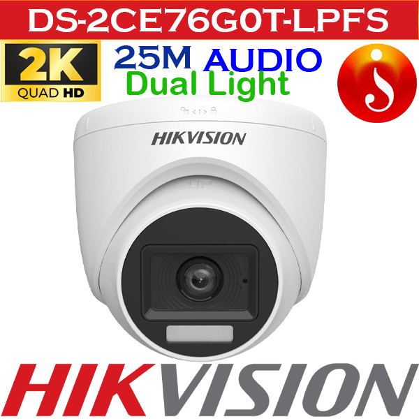 2K Hikvision Smart Hybrid Light Turret Camera DS-2CE76G0T-LPFS