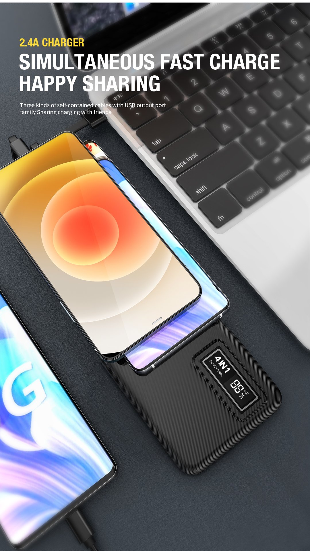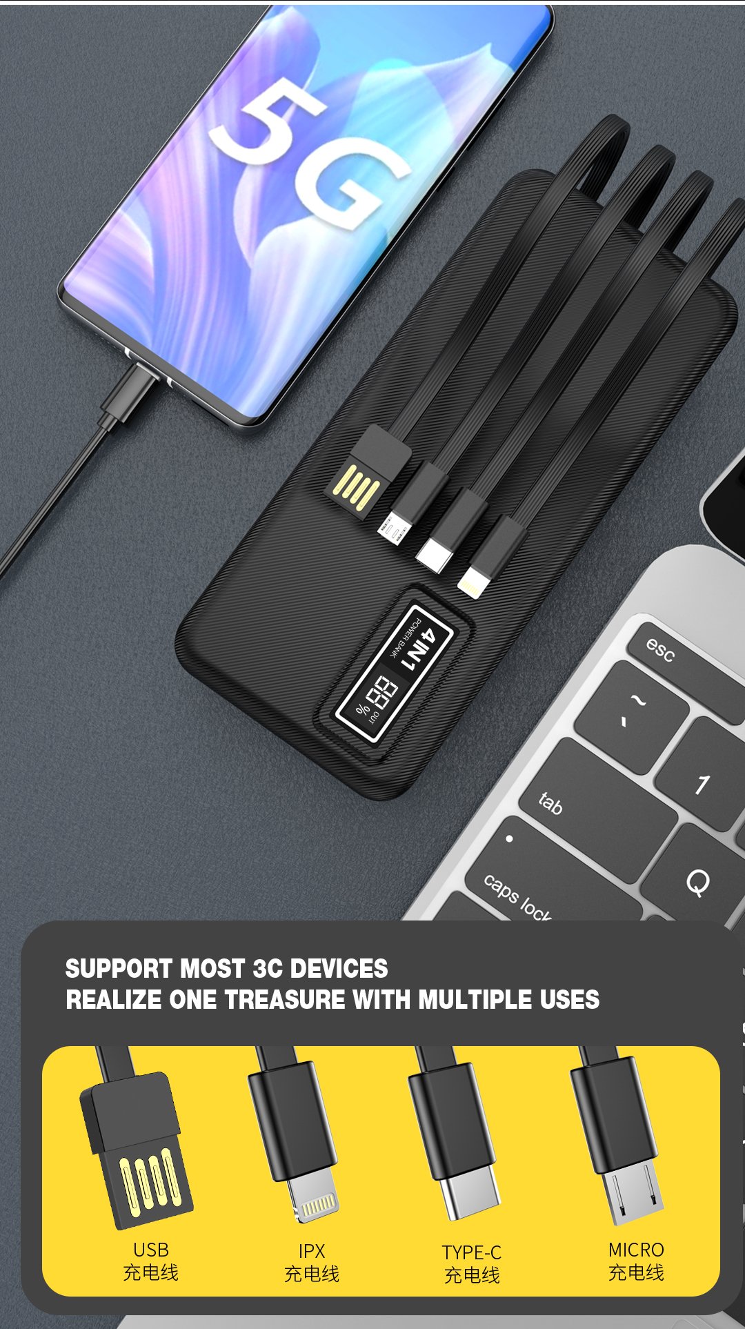 | MS-Power Bank-Built-in-Cables | Lightning Cable, Micro Cable, USB-A Cable, USB-C Cable |