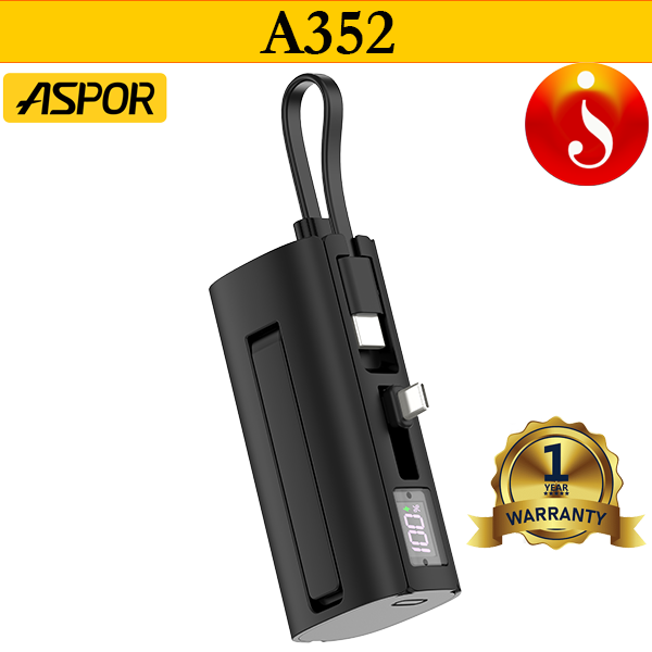ASPOR A352 Built in Cable 5000mAh Ultra-Thin Mini Compact Portable Emergency Power Bank