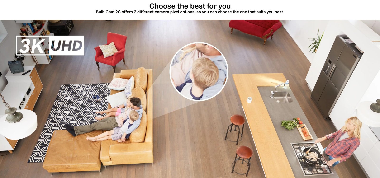screws into a standard light socket for power, connecting to your home network via Wi-Fi.