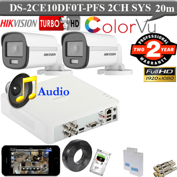 Hikvision 2mp colourvu 2mp voice 2 camera package