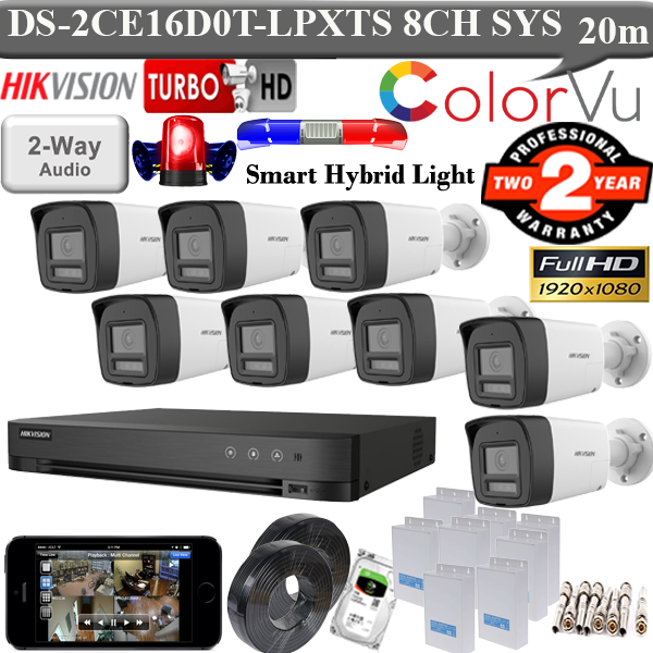 Hikvision 2mp PIR Two-Way Audio 8 camera kit