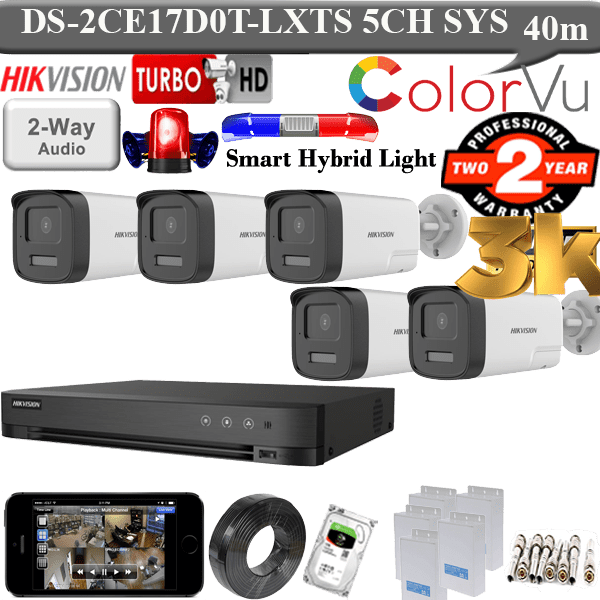 Hikvision 2mp Siren Two-Way Audio Smart Dual-Light 5 camera 40m kit 1TB HDD