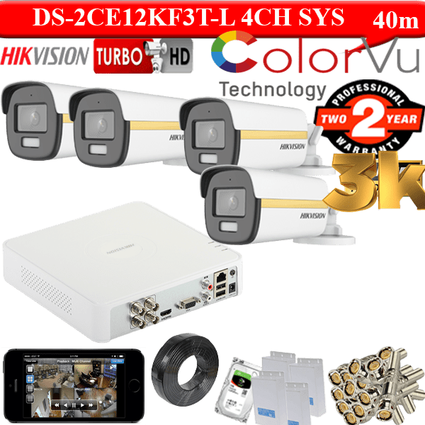 Hikvision 3K-5MP Gold colorvu-Dual light 4 camera 40m kit