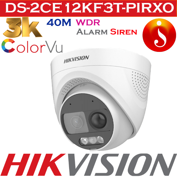 Hikvision 3K ColorVu PIR Siren 5MP Turret Camera DS-2CE72KF3T-PIRXO