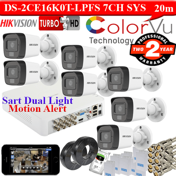 4 Channel Turbo HD DVR Model-DS-7104HQHI-K1- 01Unit 2MP Colorvu WDR, 3DNR, Cameras Model-DS-2CE16DF0T-LPFS 04Units 500GB Hard Disk Drive Option 1TB Hard Disk or 2TB Hard Disk- 01Units 12V-2Amp Power Supply- 4Units 3C2V Video Cable- 100Meters BNC Video connectors- 8Units