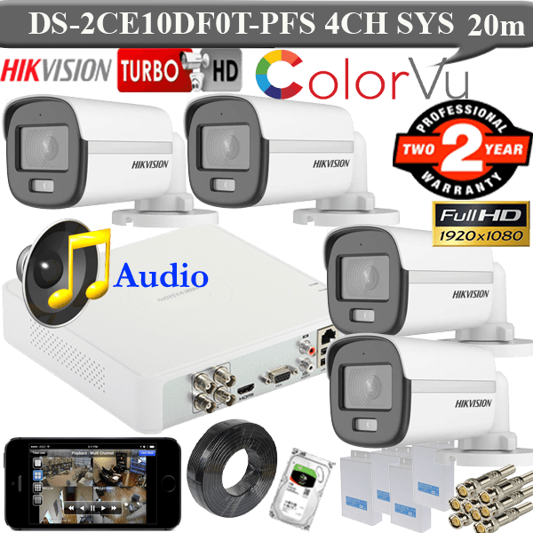 Hikvision colorvu with audio 4 cameras DS-2CE10DF0T-PFS