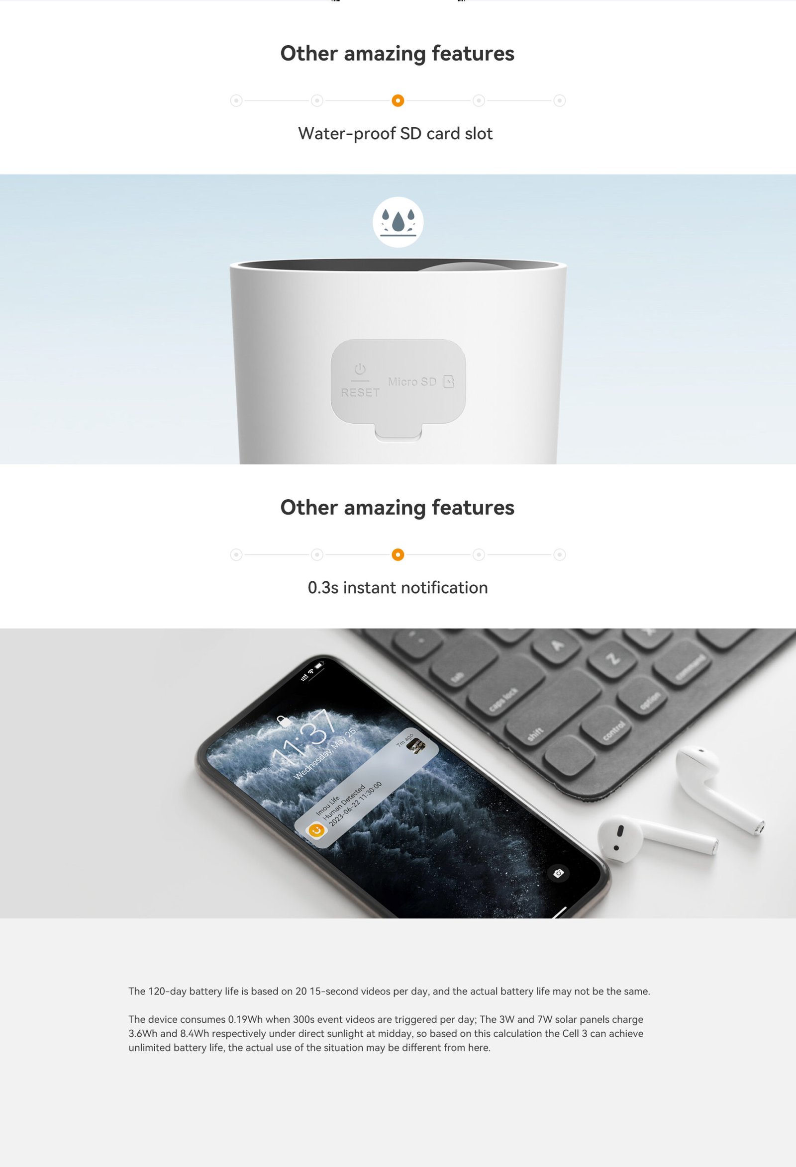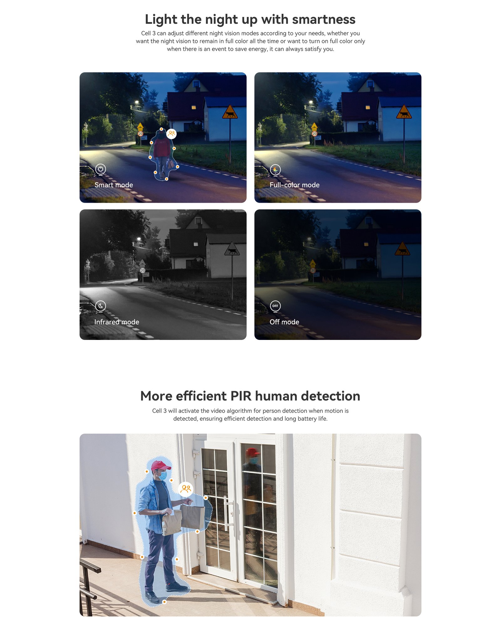 - All-in-One Solar-Powered 5MP Security: The Cell 3C combines a built-in 2.2W solar panel with 5MP UHD video resolution, ensuring 24/7 protection. Just two hours of daily sunlight keeps the camera powered for near-infinite operation.